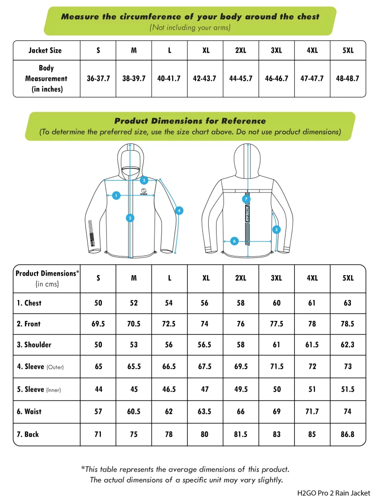 • Rynox H2GO Pro 2 Rain Jacket is primarily designed and sized to be worn over a riding jacket. To wear the H2Go over a riding jacket, select the same size as the size of your riding jacket