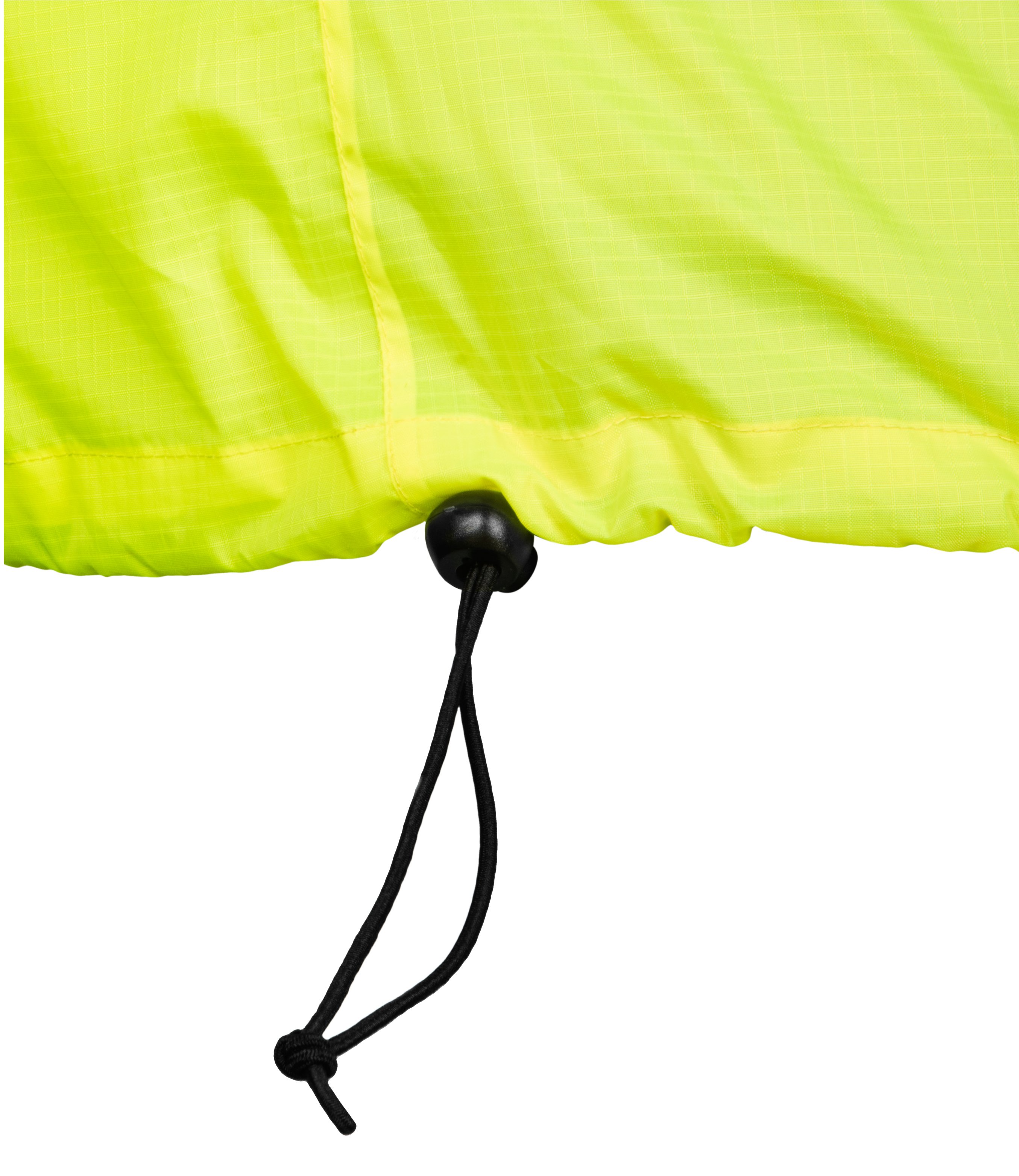 • Stow-away Pouch: Sleek drawstring pouch lets you store the rain jacket during transport
