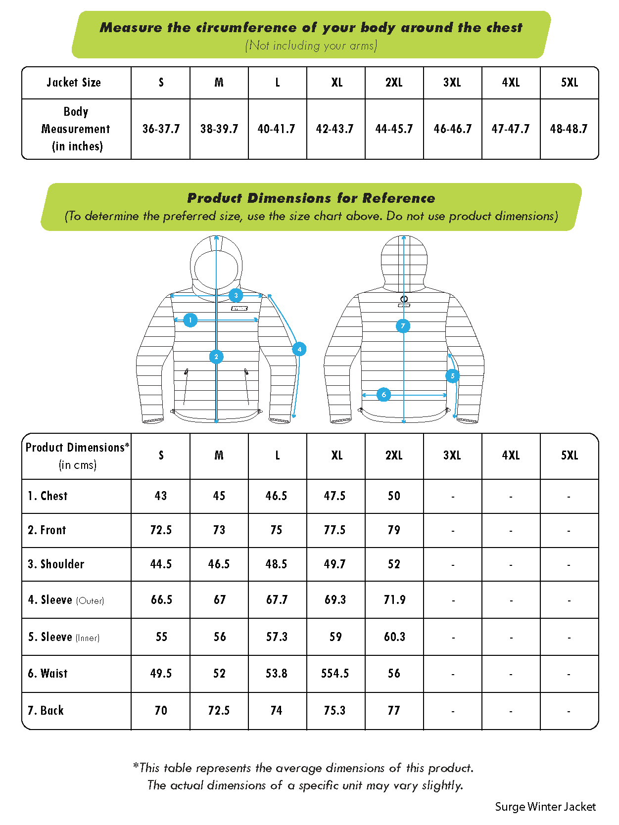 Size Chart:-