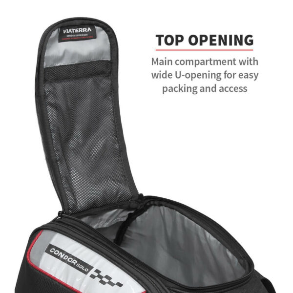 Main compartment with wide top U-opening for easy packing and access