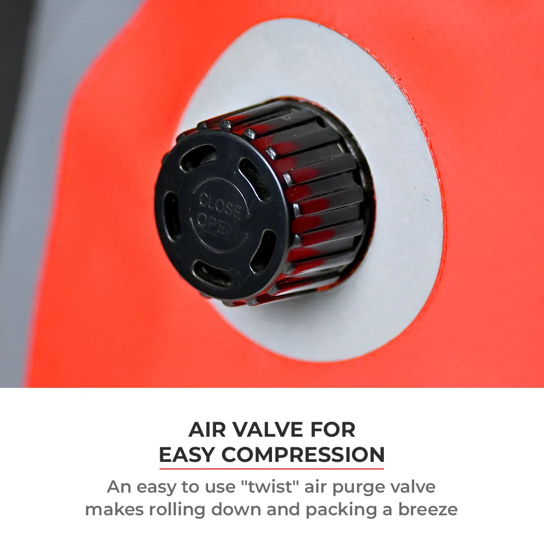 • An easy to use “twist” air purge valve makes rolling down and packing a breeze.